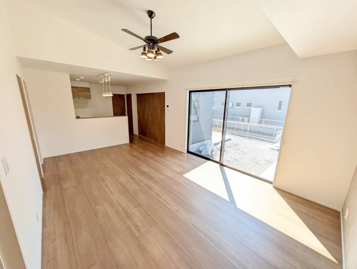【リビング】 明るい光が差し込む開放感あふれるリビングは、ご家族が自然と集まる憩いの場所となります。 温かい会話が弾む心地よい空間で、日々の暮らしを豊かに彩る特別な時間を過ごせます。