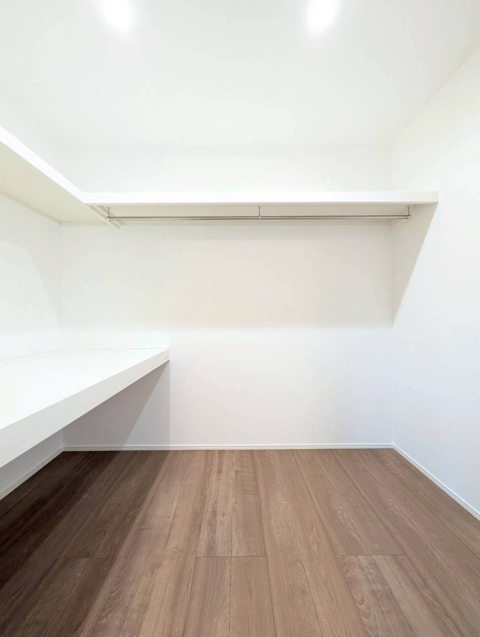 【WIC】 大容量のウォークインクローゼットなので衣類はもちろん、小物やカバンもたっぷり収納可能です。 お部屋を広く使うことができ、日々の生活をより快適にサポートします。