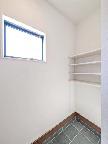 【ランドリールーム】 ランドリールームは洗濯機から近い場所にあるので、お洗濯物を運ぶ作業もラクラク。 お洗濯物干し以外にも家事室としても使用できるスペースです。