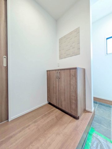 【玄関】明るくすっきりした玄関がご家族や来客を迎えてくれます。タイルはお掃除しやすく清潔を保てます。 調湿性に優れたエコカラットは玄関のアクセントにもなります。