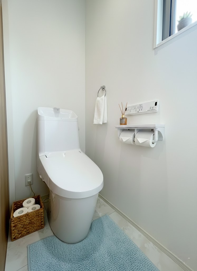 【トイレ】 温水洗浄便座付きのトイレ空間は、毎日の生活を気持ちよく過ごせます。※画像はイメージです。 嬉しいタオルリングやペーパーホルダーも完備です。