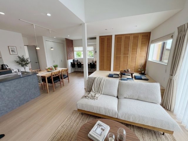 リビングは洗練された空間にも関わらず、自然光と木目の明るさで温もりを感じます。※画像はイメージです。