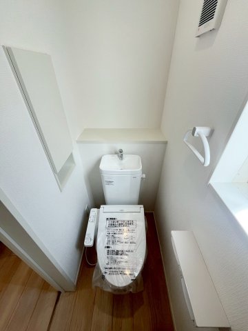 ウォシュレット機能付きトイレです。タオルリングやペーパーホルダーも完備です。