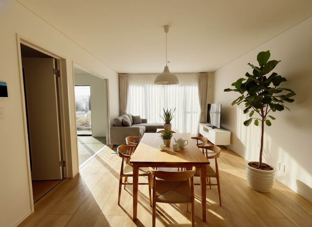 柔らかいトーンでまとめられた家族が集まる16帖のLDK。※画像はイメージです。