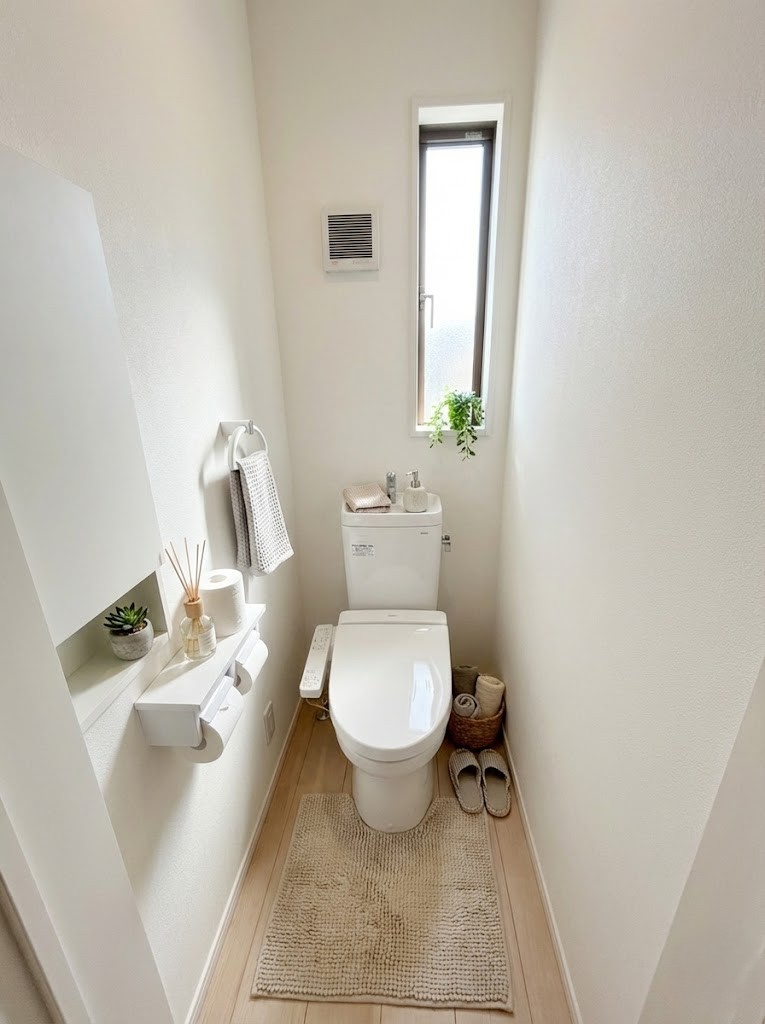 ウォシュレット機能付きトイレです。タオルリングやペーパーホルダーも完備です。※画像はイメージです。