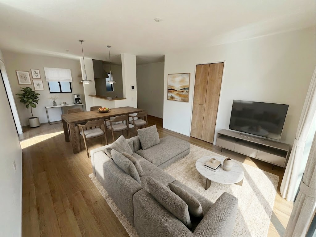 18帖のリビングはとても開放的で家族だんらんの場に最適です。※画像はイメージです。