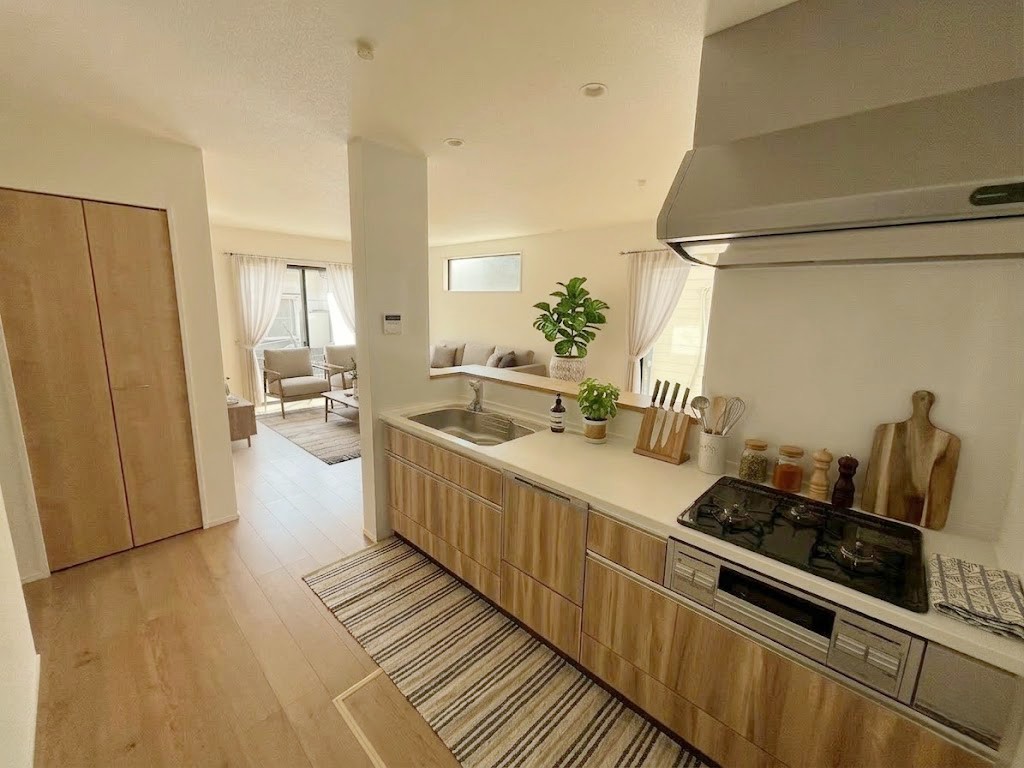 リビングで寛ぐ家族や小さなお子様を見守りながら料理が出来る対面式キッチン。※画像はイメージです。
