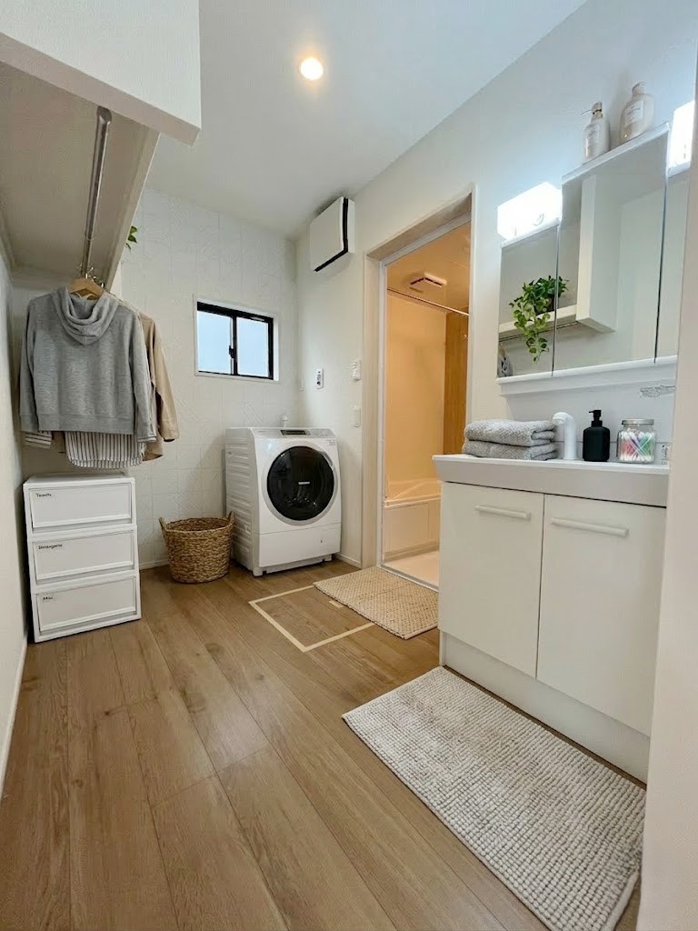 脱衣スペースに三面鏡付きの洗面化粧台。曇り止め付きのミラーキャビネットを採用。※画像はイメージです。