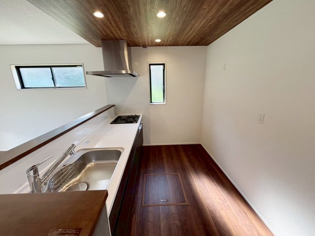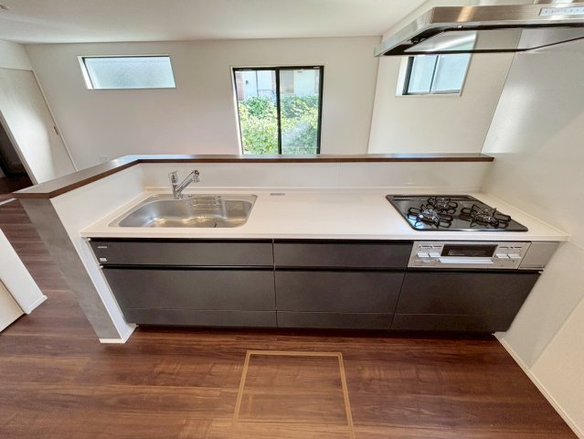 お子様や家族と距離感近く料理が可能な対面式のシステムキッチンです。