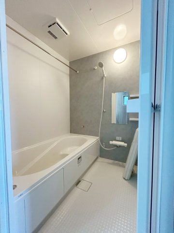 1坪タイプのお風呂。浴室暖房換気乾燥機付きで、雨の日の洗濯や冬の入浴を快適に過ごせます。