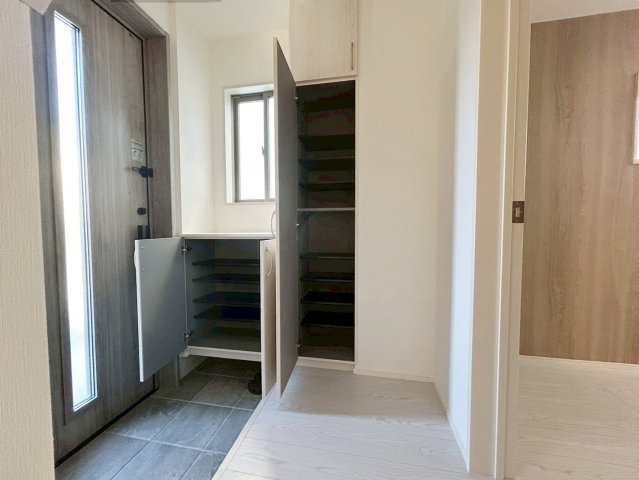 お家の顔となる玄関をいつでもスッキリさせられますね。嬉しいシューズボックス付。