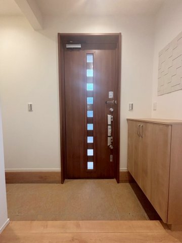 【玄関】明るくすっきりした玄関がご家族や来客を迎えてくれます。タイルはお掃除しやすく清潔を保てます。 調湿性に優れたエコカラットは玄関のアクセントにもなります。
