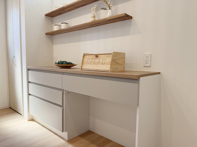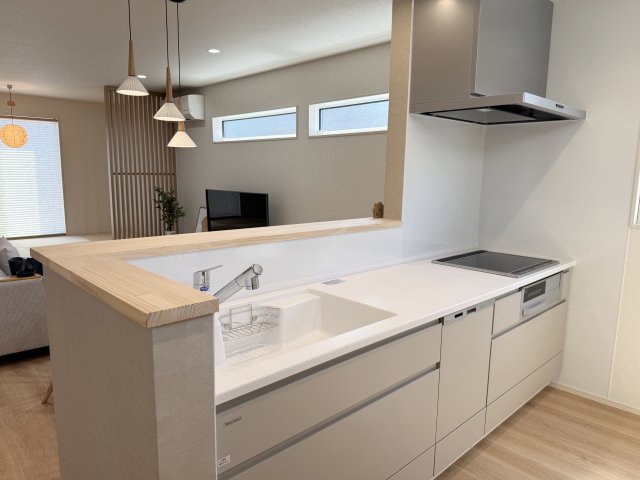 タカラスタンダードのオフェリアを採用。ペニンシュラキッチン且つホーロー素材でお掃除もラクラクです。