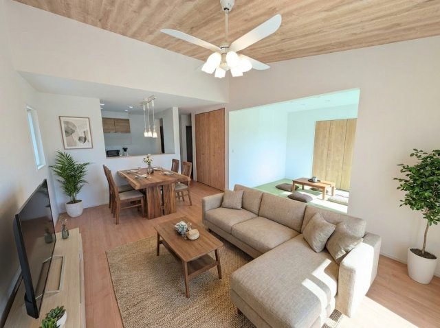 【リビング】 明るい光が差し込むリビングは、家族が集まる憩いの場所となります。※画像はイメージです。 温かい会話が弾む心地よい空間で、日々の暮らしを豊かに彩る特別な時間を過ごせます。