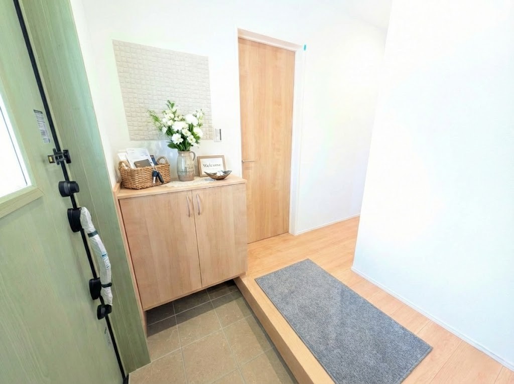 【玄関】明るくシューズボックス付の玄関。タイルはお掃除しやすく清潔を保てます。※画像はイメージです。 調湿性に優れたエコカラットは玄関のアクセントにもなります。