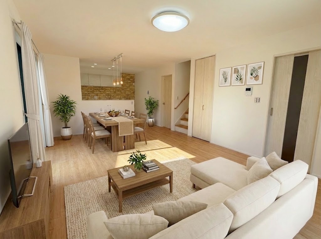【リビング】 明るい光が差し込むリビングは、家族が集まる憩いの場所となります。※画像はイメージです。 温かい会話が弾む心地よい空間で、日々の暮らしを豊かに彩る特別な時間を過ごせます。
