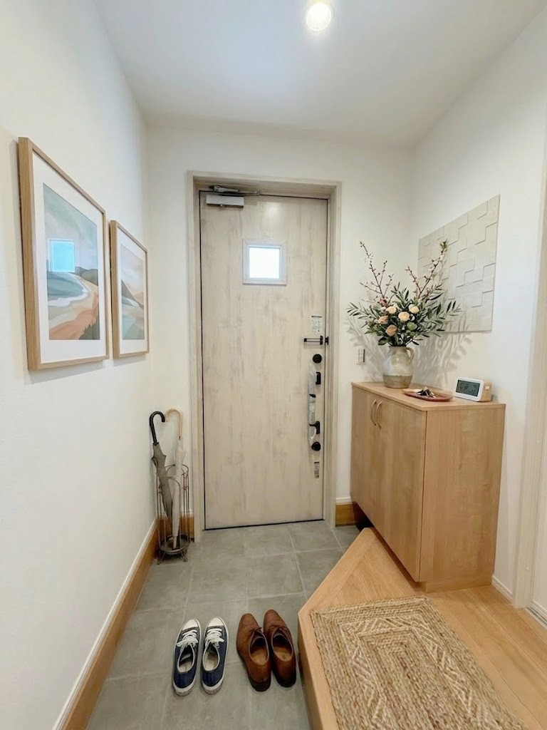 【玄関】明るくシューズボックス付の玄関。タイルはお掃除しやすく清潔を保てます。※画像はイメージです。 調湿性に優れたエコカラットは玄関のアクセントにもなります。