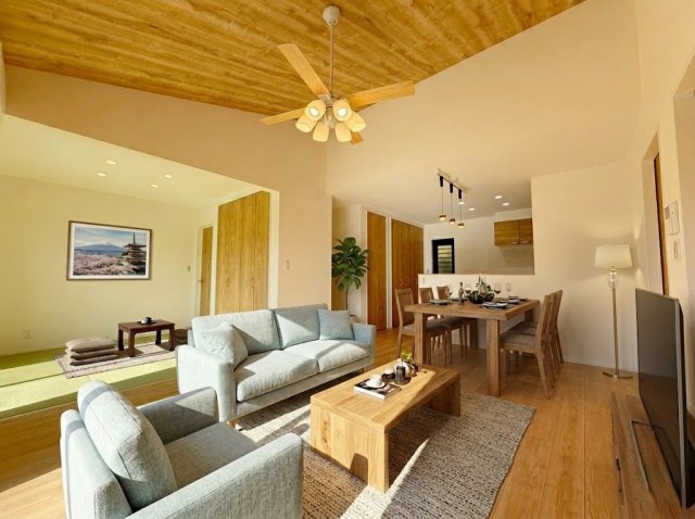【リビング】 明るい光が差し込むリビングは、家族が集まる憩いの場所となります。※画像はイメージです。 温かい会話が弾む心地よい空間で、日々の暮らしを豊かに彩る特別な時間を過ごせます。