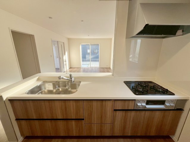 お子様や家族と距離感近く料理が可能な対面式のシステムキッチンです。