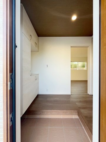 すっきりとした玄関。玄関収納付きで、生活感を出さずに収納可能です。