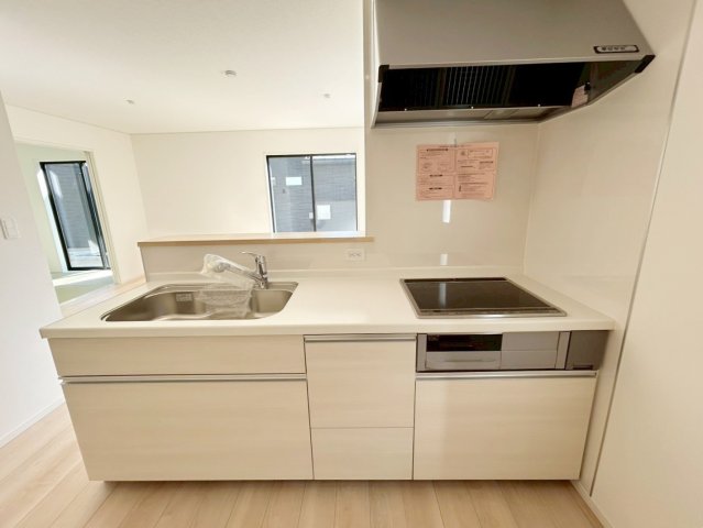 IHクッキングヒーター、浄水機能付き水栓を備えた対面式のシステムキッチンです。