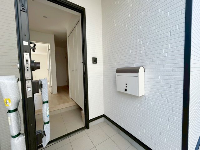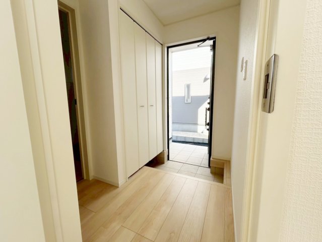 すっきりとした玄関。玄関収納付きで、生活感を出さずに収納可能です。