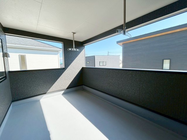 屋根付きバルコニーだから天気に左右されずに洗濯物を干せて便利。