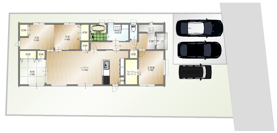 本庄小・本庄中エリア■ZEH水準住宅■本庄小、銀行、郵便局、コンビニ、スーパー、病院、ホームセンターまで徒歩10分圏内