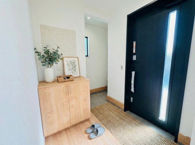 【玄関】明るくシューズボックス付の玄関。タイルはお掃除しやすく清潔を保てます。※画像はイメージです。 調湿性に優れたエコカラットは玄関のアクセントにもなります。