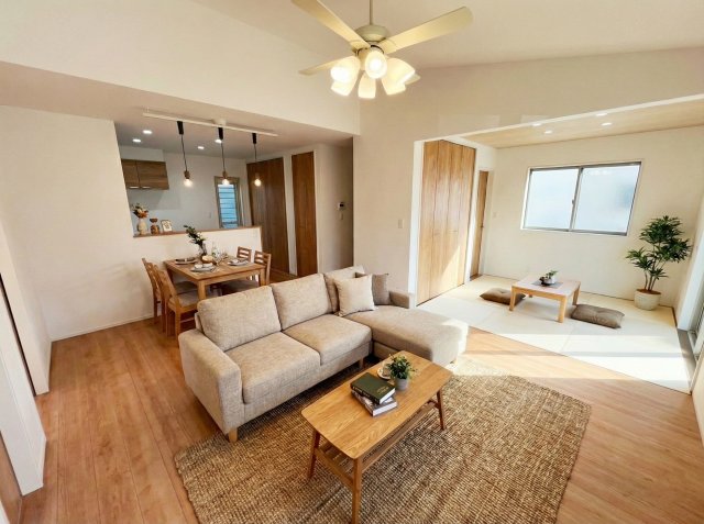 【リビング】 明るい光が差し込むリビングは、家族が集まる憩いの場所となります。※画像はイメージです。 温かい会話が弾む心地よい空間で、日々の暮らしを豊かに彩る特別な時間を過ごせます。