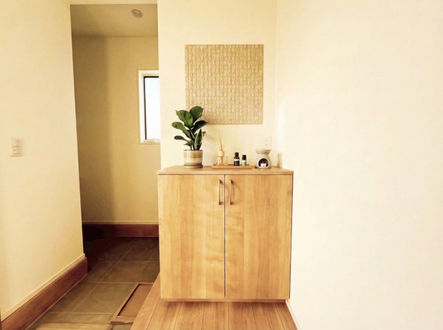 【玄関】明るくシューズボックス付の玄関。タイルはお掃除しやすく清潔を保てます。※画像はイメージです。 調湿性に優れたエコカラットは玄関のアクセントにもなります。