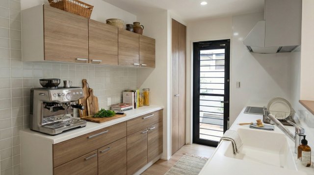 【キッチン】 キッチン収納は食器類や消耗品が保管できキッチン回りが片づきます。※画像はイメージです。 作業スペースも広く、スムーズな家事導線を確保できます。