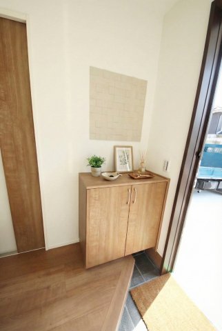 【玄関】明るくシューズボックス付の玄関。タイルはお掃除しやすく清潔を保てます。※画像はイメージです。 調湿性に優れたエコカラットは玄関のアクセントにもなります。