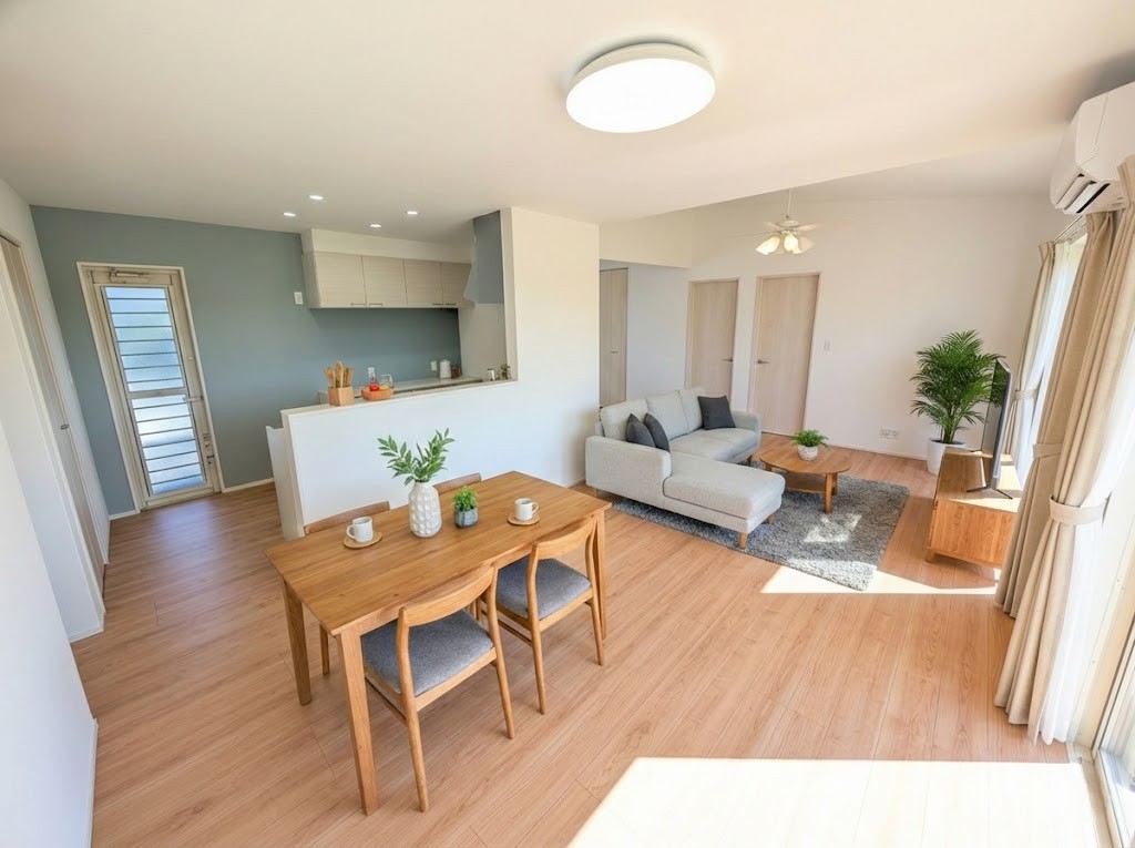 【リビング】 明るい光が差し込むリビングは、家族が集まる憩いの場所となります。※画像はイメージです。 温かい会話が弾む心地よい空間で、日々の暮らしを豊かに彩る特別な時間を過ごせます。