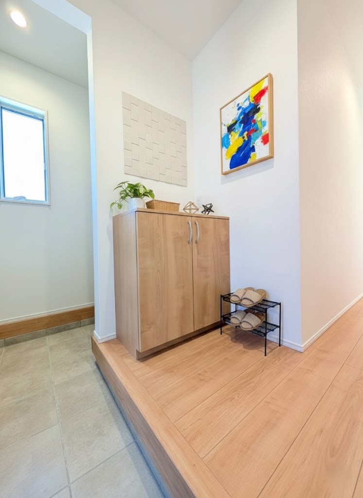 【玄関】明るくシューズボックス付の玄関。タイルはお掃除しやすく清潔を保てます。※画像はイメージです。 調湿性に優れたエコカラットは玄関のアクセントにもなります。