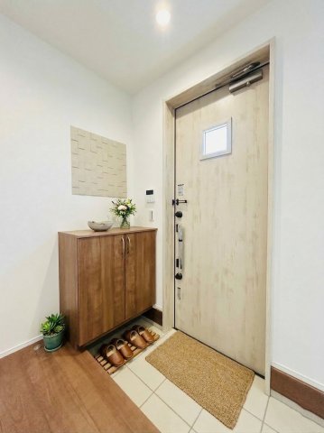 【玄関】明るくシューズボックス付の玄関。タイルはお掃除しやすく清潔を保てます。※画像はイメージです。 調湿性に優れたエコカラットは玄関のアクセントにもなります。