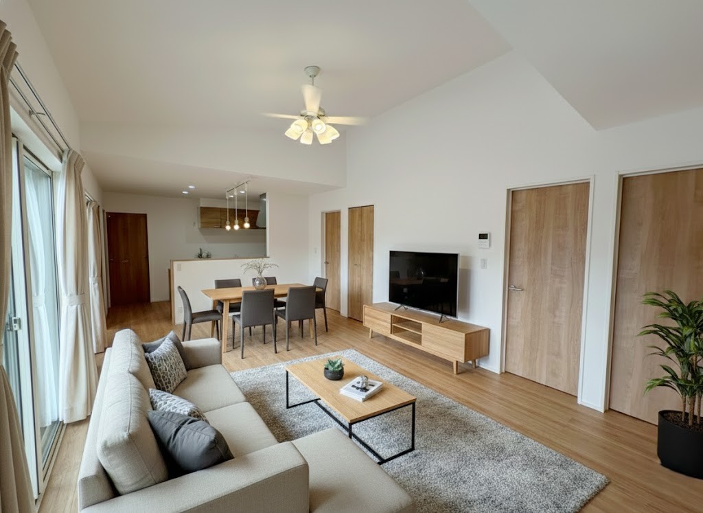 【リビング】 明るい光が差し込むリビングは、家族が集まる憩いの場所となります。※画像はイメージです。 温かい会話が弾む心地よい空間で、日々の暮らしを豊かに彩る特別な時間を過ごせます。